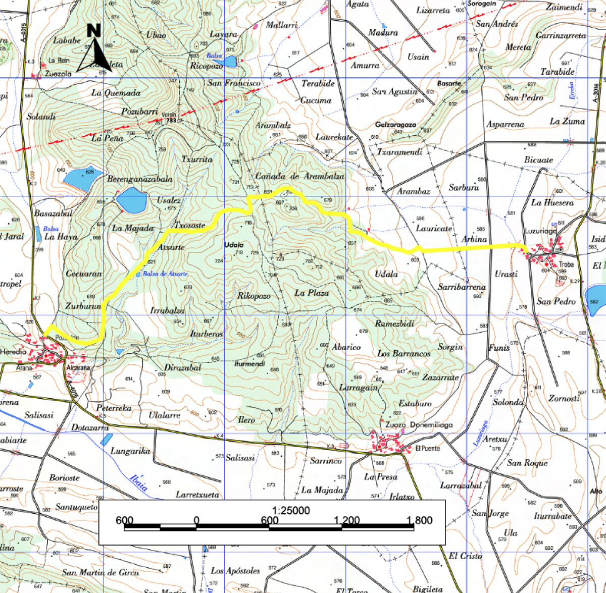 El Camino de Postas, utilizado desde el siglo XV, conectaba Madrid con Francia atravesando el Túnel de San Adrián. Este itinerario, ahora conocido como PR-A13, comienza en Heredia, un antiguo nudo de comunicaciones con una iglesia gótica de gran interés. Durante el trayecto se cruzan portillas ganaderas, bosques de quejigos y áreas con biodiversidad destacada como la balsa de Atxarte. El camino continúa por el collado de Beriain, donde se aprecian vistas al Aizkorri y al monte Berian, pasando por zonas erosionadas y prados. La ruta finaliza en Luzuriaga, con opción de seguir hasta Galarreta o regresar a Heredia.