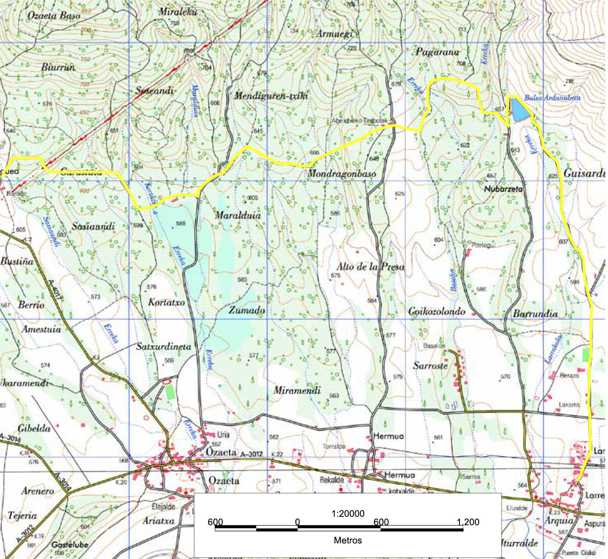 La ruta comienza en Elgea y sigue el GR-25, recorriendo 11,6 kilómetros hasta Larrea. Durante el trayecto, atraviesa paisajes variados, como bosques de ametz (haritzak) y pastizales, pasando por puntos destacados como bordas antiguas y el Ardanubeta balsa. El camino, bien señalizado, incluye zonas de interés natural y cultural, combinando la belleza del entorno con un recorrido accesible y sin grandes desniveles.